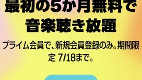 セール・キャンペーン プライムデー:音楽聴き放題サービス「Amazon Music Unlimited」を5ヶ月無料で使えるキャンペーンを開催(7/18まで)