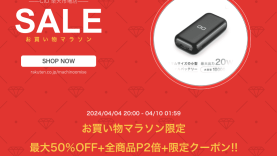 楽天セール CIO、「楽天お買い物マラソン」でモバイルバッテリーなどの人気製品を最大30%オフで販売。全商品がポイント2倍に(2/23まで)
