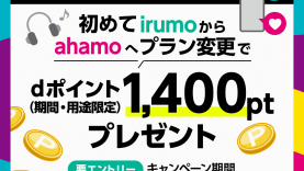 ドコモ/ahamo/irumo NTTドコモ、「irumo」から「ahamo/eximo」へのプラン変更でdポイントをプレゼントするキャンペーンを開催 2024/07/02 ドコモ/ahamo/irumo