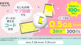 au/UQ/povo povo2.0、月末セールで「データ追加1GB(30日間/365日間)」「データ追加0.5GB(24時間)3回分」を期間限定で提供開始