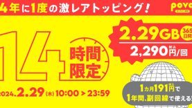 au/UQ/povo povo2.0、4年に1度のうるう年を記念したトッピング「データ追加2.29GB(365日間)」を本日限定で提供
