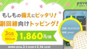 au/UQ/povo povo2.0、4つの期間限定トッピングを提供開始。副回線用に「1GB(180日間)630円」など